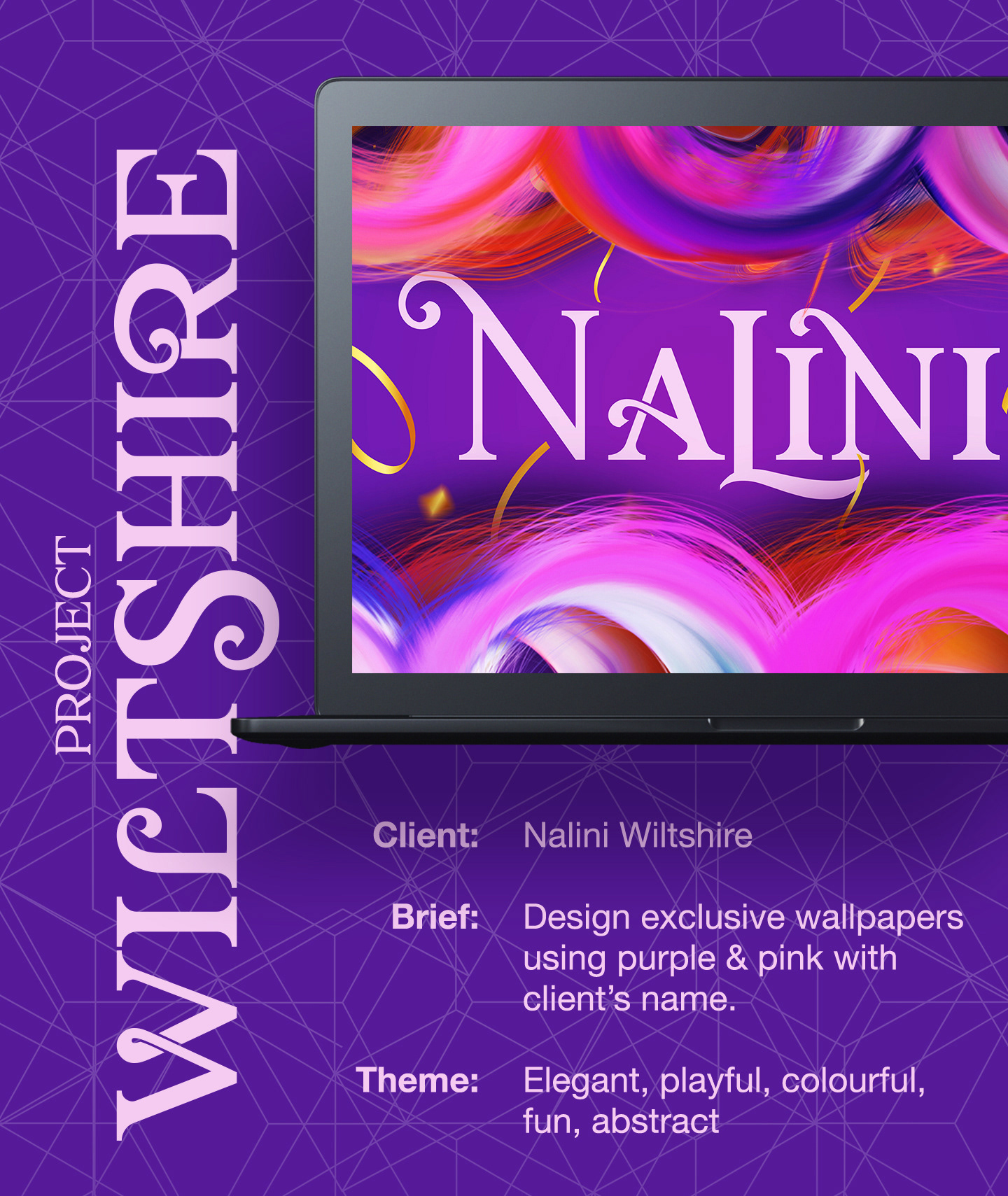 Nalini is a vibrant teen with a love for elegant design and bold colours. In this design we created exclusive wallpapers to express her unique personality and love for all things purple and pink.